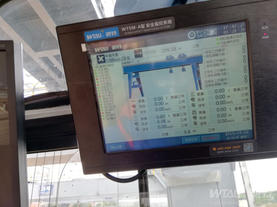 成都鐵路局石板灘焊軌基地龍門吊配裝微特技術有限公司的WTSM-A型安全監控系統。