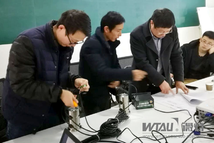 專家組成員正在對微特公司生產的開度荷重綜合監控裝置進行出廠驗收
