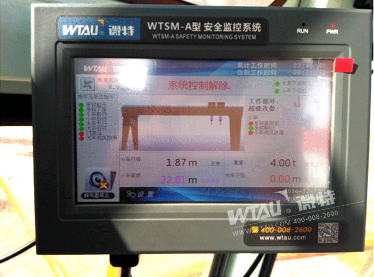 圖為微特WTSM-A型門式起重機安全監控系統主機界面