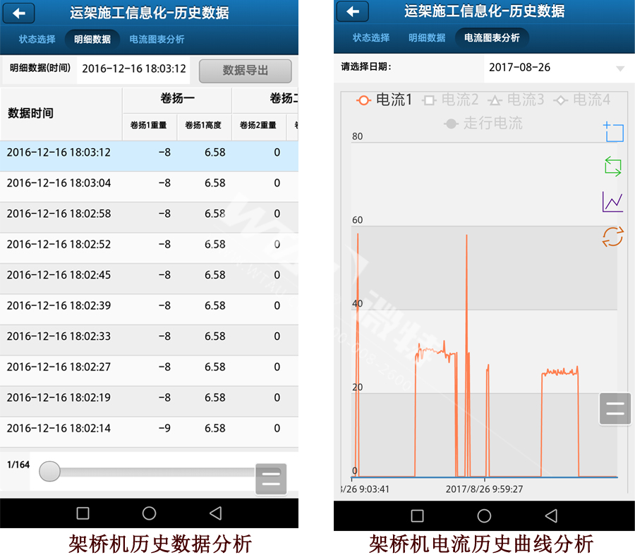 在作業(yè)過(guò)程中電流、吊重出現(xiàn)異常,系統(tǒng)會(huì)自動(dòng)報(bào)警;行走路徑發(fā)生偏移,系統(tǒng)將自動(dòng)熄火,還將實(shí)時(shí)畫面?zhèn)魉偷郊軜驒C(jī)操作室、項(xiàng)目部信息化指揮中心以及管理人員的手機(jī)上,真正實(shí)現(xiàn)了多維監(jiān)測(cè),讓架橋機(jī)健康有了保證,生命也得到了延續(xù)。