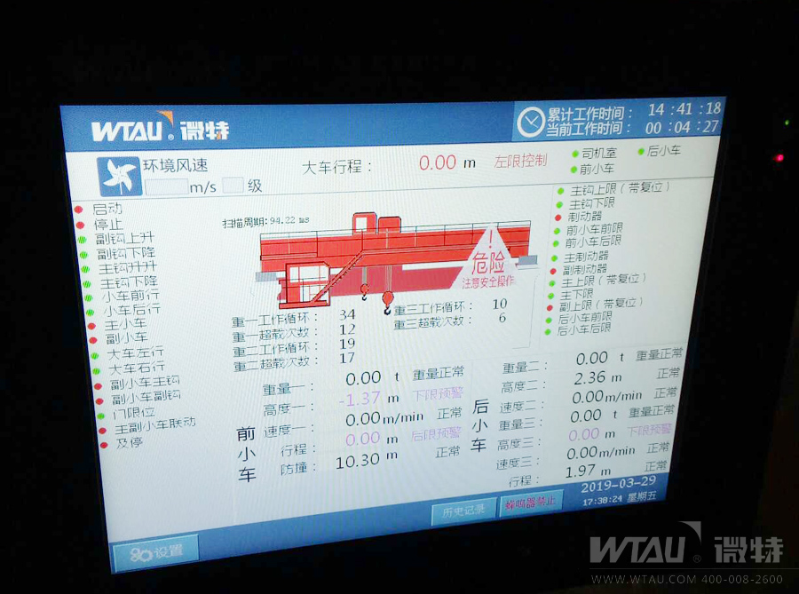 ▲微特WTSM-A型橋式起重機安全監控系統主機顯示屏