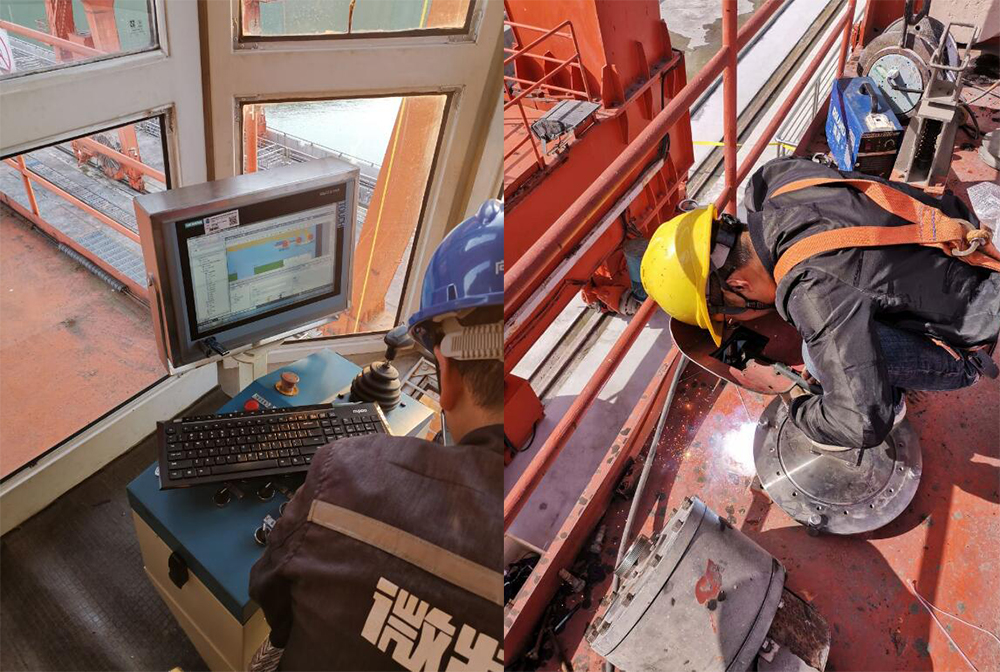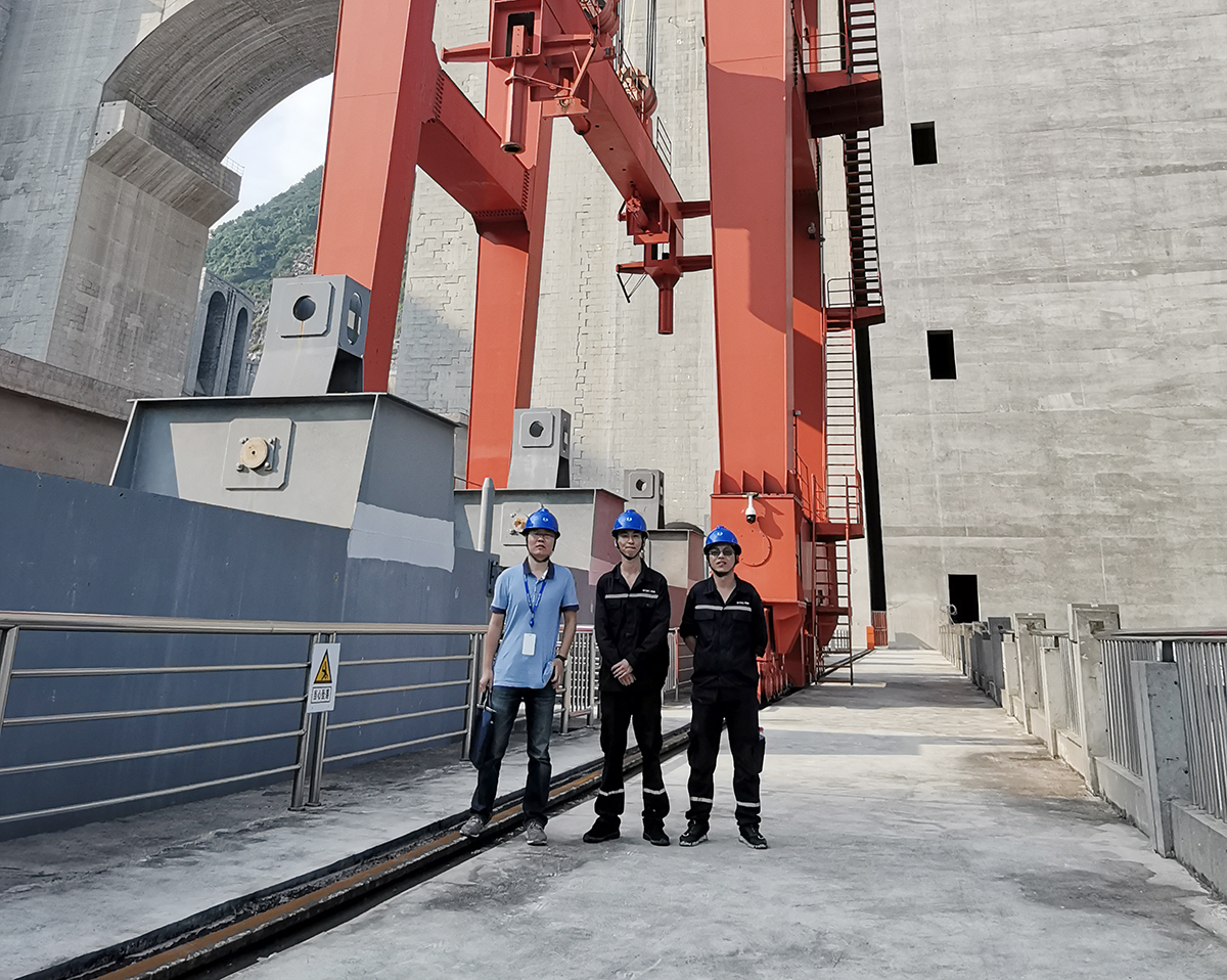 施工過程中,由于尾水門機抓梁不能落到地上,安裝過程中全程都是高空作業,這無疑也加大了施工難度。而且,安裝期內恰逢當地多雨天氣,為了不延誤工期,售后工程師們時常要冒雨施工。雖然過程中困難較多,但均被一一克服解決,項目有序推進。