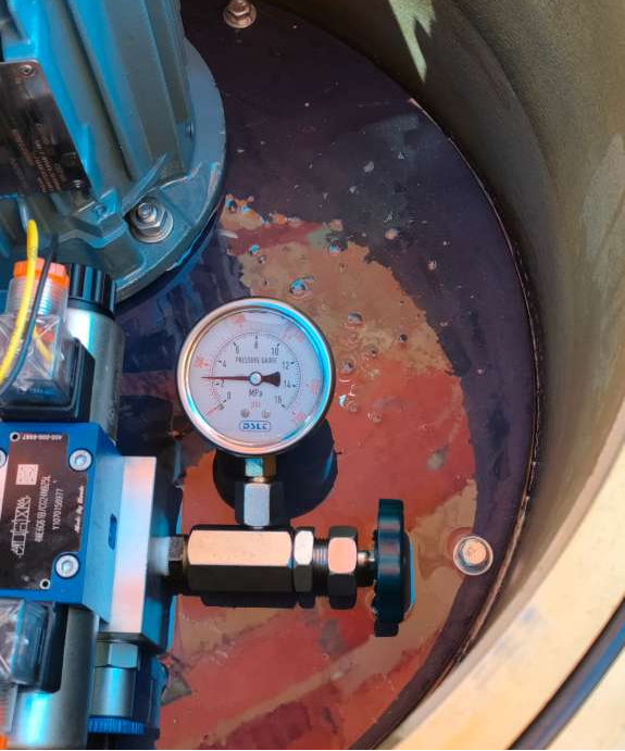 液壓泵站油箱采用10mm壁厚碳鋼材質(zhì),按 7MPa壓力設(shè)計(jì)制作。對(duì)油缸密封材料進(jìn)行改進(jìn)采用進(jìn)口密封圈、雙層密封。油箱設(shè)置加油孔、放油孔、觀察孔。
