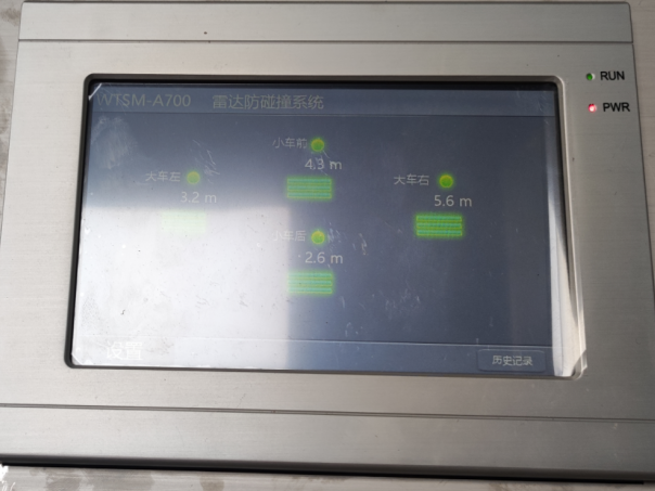 3、防撞雷達(dá)系統(tǒng)實(shí)時(shí)監(jiān)測(cè)吊鉤的下方,當(dāng)有危險(xiǎn)目標(biāo)(如行貨物架或其它堆放的物體)出現(xiàn),雷達(dá)系統(tǒng)提前向吊車(chē)司機(jī)發(fā)出報(bào)警,使司機(jī)及時(shí)作出反應(yīng),同時(shí)雷達(dá)輸出信號(hào)到達(dá)吊車(chē)控制系統(tǒng),根據(jù)情況進(jìn)行自動(dòng)停車(chē)或減速。