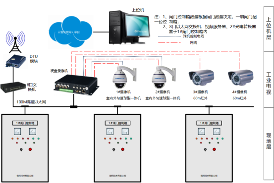 工業(yè)視頻子系統(tǒng)包括攝像機(jī)、傳輸、控制、顯示、存儲(chǔ)5大部分。攝像機(jī)通過(guò)線(xiàn)纜將視頻圖像傳輸?shù)娇刂浦鳈C(jī),控制主機(jī)再將視頻信號(hào)分配到監(jiān)視器,通過(guò)控制主機(jī),操作人員可發(fā)出指令,對(duì)攝像機(jī)的上、下、左、右的動(dòng)作進(jìn)行控制及對(duì)鏡頭進(jìn)行調(diào)焦變倍的操作,并可通過(guò)控制主機(jī)實(shí)現(xiàn)在多路攝像機(jī)的切換。利用特殊的錄像處理模式,可對(duì)圖像進(jìn)行錄入、回放、處理等操作,使錄像效果達(dá)到最佳。實(shí)現(xiàn)緊急遠(yuǎn)程提門(mén)和落門(mén)等操作。