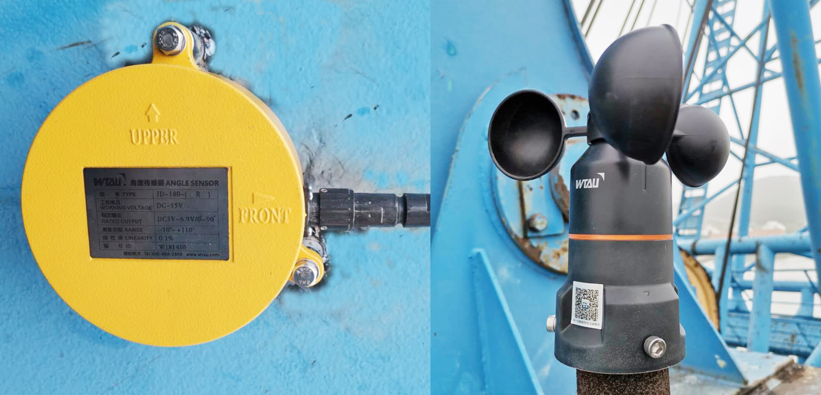 ▲安裝在門座機上的角度傳感器及風速傳感器