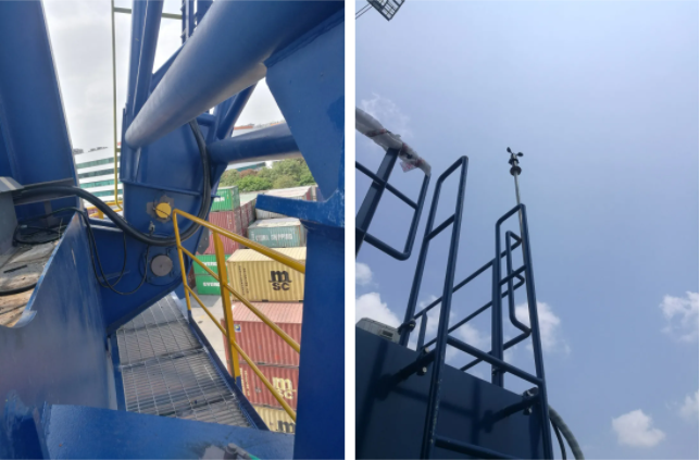 微特此次與中藝重工合作主要是為新裝固定式門座機安裝力矩限制器,在經過項目前期的溝通洽談確定安裝方案后,微特售后工程師奔赴中山在現場人員配合下進行儀表的安裝調試工作。