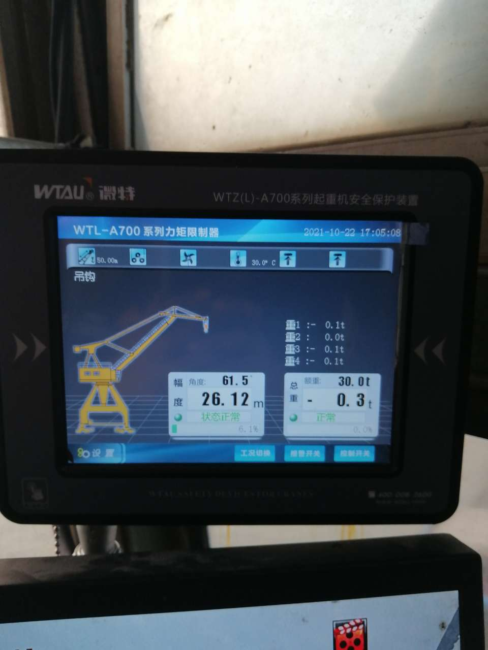 微特此次為南通中集碼頭2號門座機配裝的WTL-A(700)型起重機力矩限制器為微特自主設計研發生產的產品,是一款多功能、高性能、智能人機交互的高端起重機安全監控裝置。產品擁有實時數據動態顯示、聲光報警、數據備份、斷電記憶以及密碼保護功能,且儀表本身具有抗干擾性強,操作簡單,通用性強等優點。