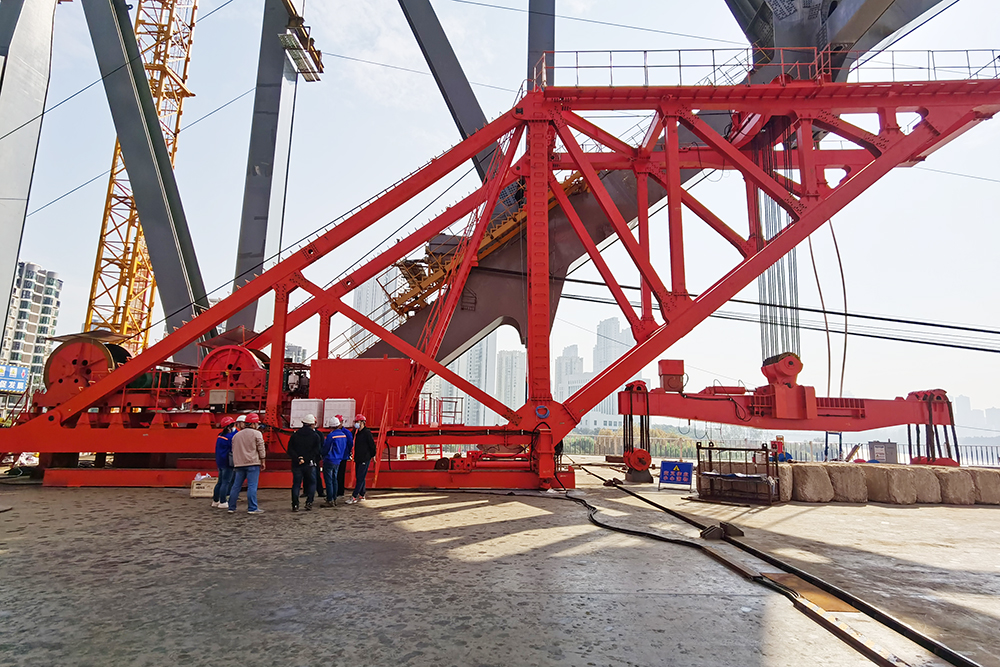 當時漢江灣橋的施工現場機器轟鳴,大橋正在進行上部結構鋼梁安裝,有的在焊接,有的在吊裝桿件,工序有序穿插,而微特本次主要給架梁起重機加裝安全監控管理系統,完成該架梁起重機安全監控管理系統的設計、現場安裝、調試及后續使用服務。