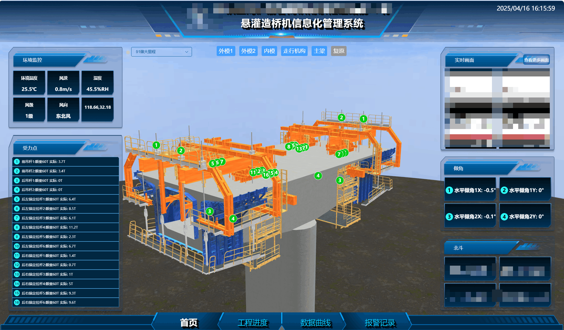 在越來越大的發展下,對造橋機的平衡施工監測,微特技術有限公司參與了2年多,也就是和該類型設備首次出現就開始了對其安全性的監測。在雄忻高鐵項目,微特首次和設計院合作為其第一臺上承式造橋機進行了監測。主要測量#走線不平衡#重量澆筑不平衡,兩個關鍵參數分別用力傳感器和北斗監測實現。其次對設備本身傾斜,走行距離,結構應力,環境監測等數據進行采集。另外對現場施工視頻監控進行覆蓋。