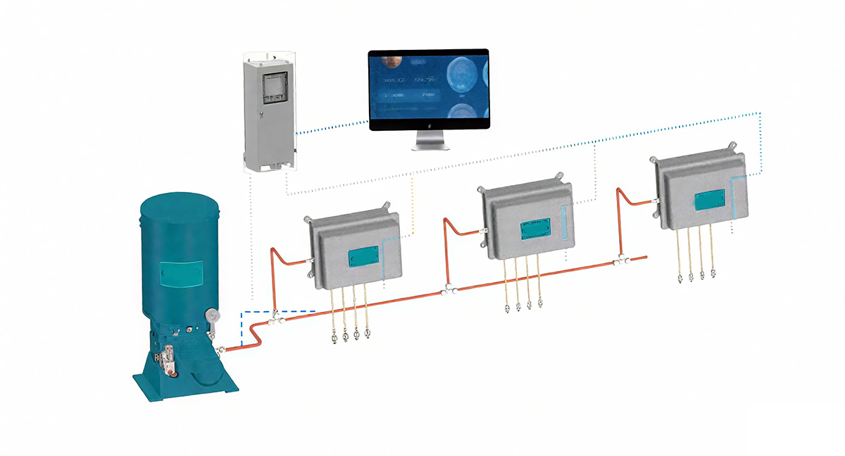 單線式潤滑系統與遞進式潤滑系統在組成部件上的區別是:單線系統需要配置壓力監控單元和換向單元,控制單元通過識別主油路的壓力信號,完成泄壓油路切換,進而完成潤滑注脂作業。