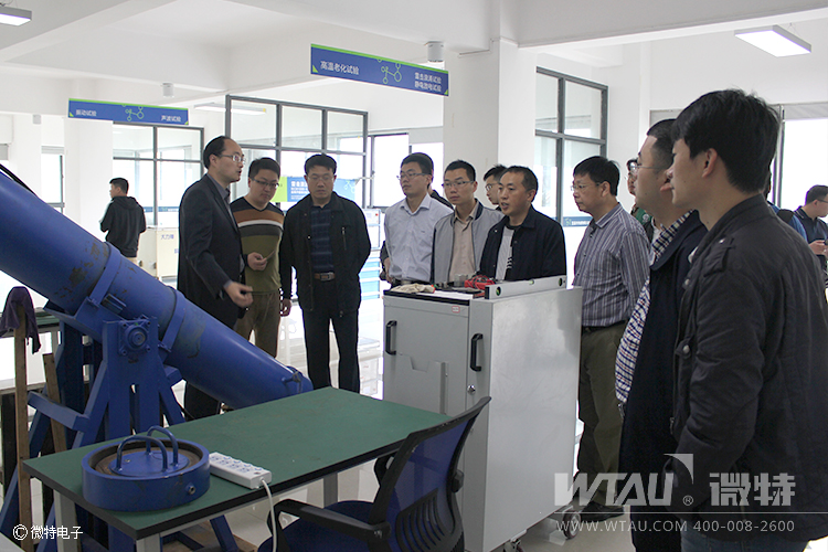 在實驗室微特電子高總向來訪貴賓介紹雷擊浪涌實驗設備