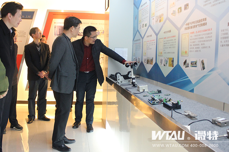 在微特電子展廳示,微特公司創始人聶道靜向各位領導詳細介紹了微特十五年成長轉型大事件。經過十五年的創業發展,微特公司成長為國家高新技術企業,湖北省“雙軟”企業, 全國起重機械標準化技術委員會會員單位,參與4項國標起草并承辦多次國標會議。