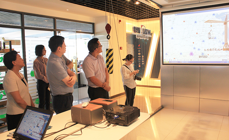 而后肖主任一行來到由微特投建的智能吊裝設備研發檢測中心,聶總一一向大家介紹了檢測中心內的各種實驗檢測設備,在闡述這些設備的功能和作用的同時特別講到微特電子作為一家保障起重機安全的公司,自身的產品品質要求非常高,而這些實驗設備就是其品質的有力保障。