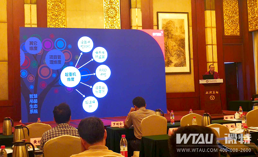 微特電子作為起重安全專家企業特邀參加本次會議,并在會議現場由市場總監李彬作題為“起重機智慧吊裝生態系統”的交流演講。