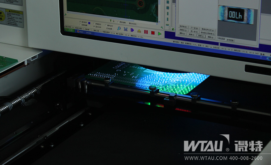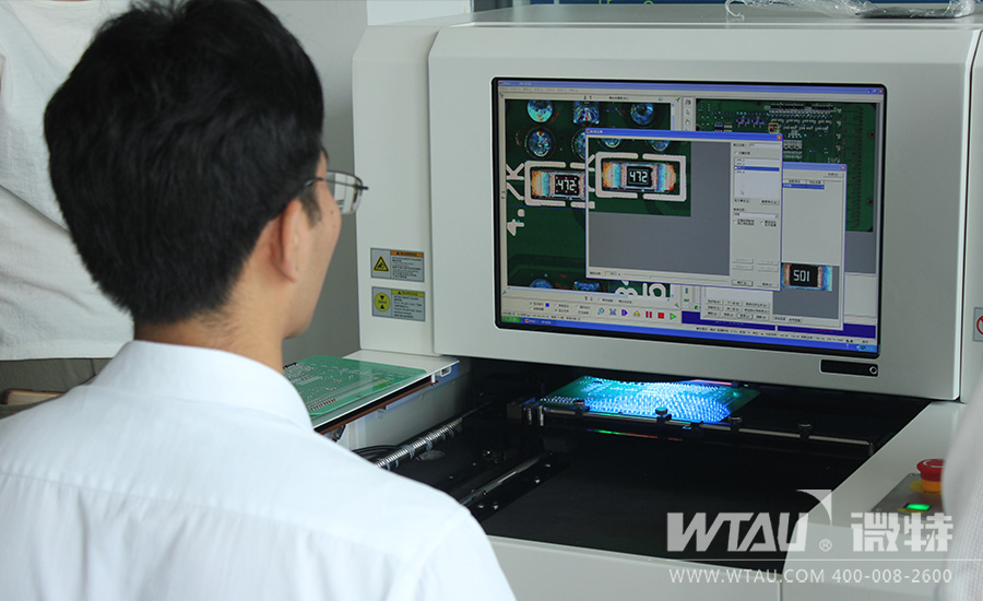 為提高儀表的穩定性,產品的優良率,微特電子特別在SMT生產線上增添了自動光學檢測設備(Automatic Optical Inspection,簡稱AOI)。該設備主要用于檢查SMT生產線上貼裝原件的焊接質量、安裝狀態及錫膏印刷的效果,通過與“預存”標準件進行比,AOI可將不良品顯示出來,從而改進產品品質。