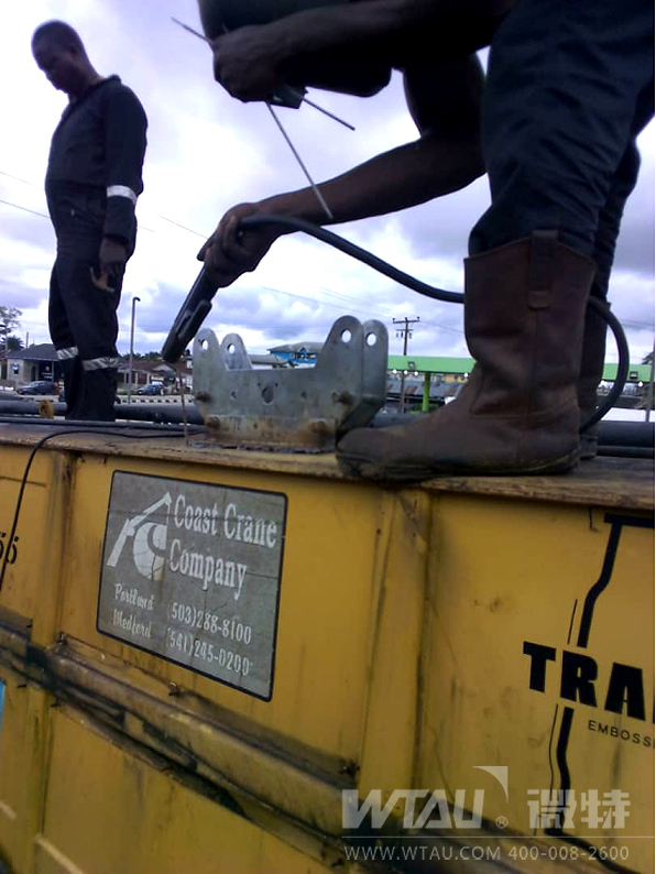 有微特經驗豐富的技術工程師與非洲伙伴熟絡的交流,力矩限制器的安裝一定沒問題!而這臺吊車即將開赴雪佛龍石油公司的港口開展新的建設工作。