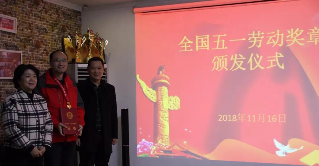 11月16日,宜昌市總工會黨組成員、女職工委員會主任朱利民,高新區總工會常務副主席馮和如一行蒞臨微特智慧谷,為微特技術副總經理高鈺敏頒發全國五一勞動獎章及榮譽證書。