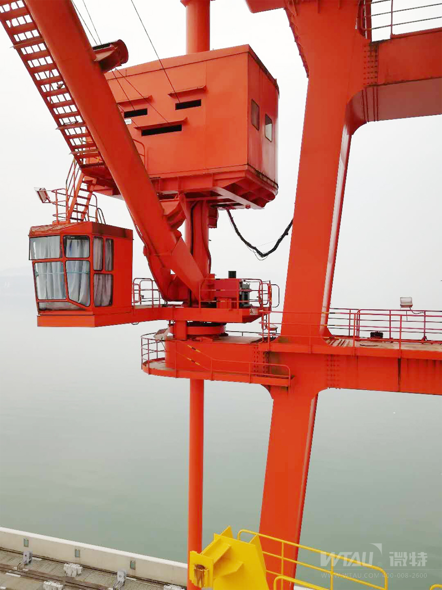 圖上的壩頂門機擁有四個駕駛室,微特在四個駕駛室分別安裝有監(jiān)控系統(tǒng)儀表及監(jiān)控視頻顯示器,從技術(shù)上實現(xiàn)四個駕駛室監(jiān)控主從分布,協(xié)同監(jiān)控。
