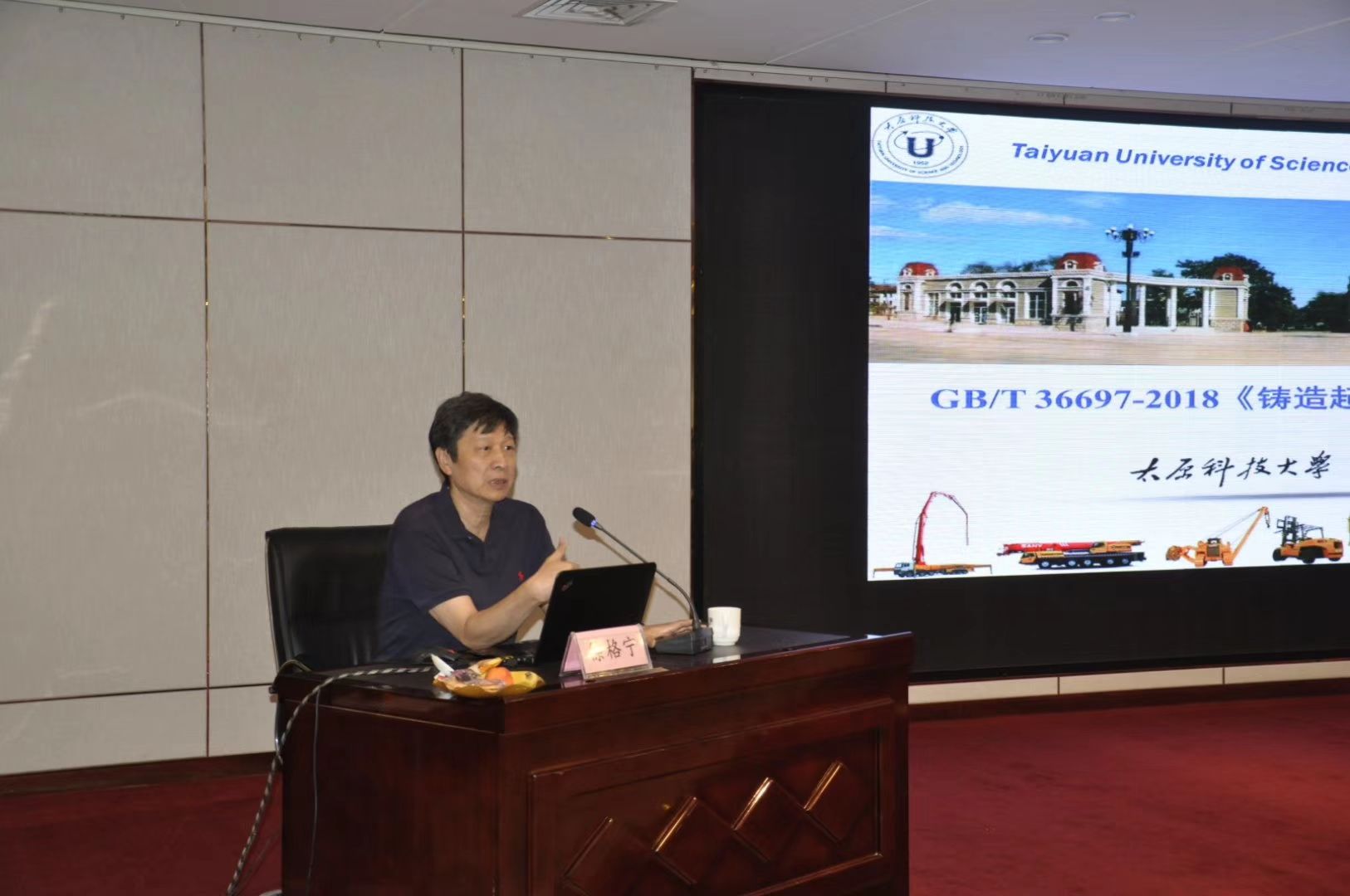 下午,由太原科技大學徐格寧教授針對GB/T 36697-2018《鑄造起重機報廢條件》第二部分及相關課題研究成果做相關深入講解;期間講到鑄造起重機整機報廢評價的關鍵就是主體結構件應力譜的采集。
