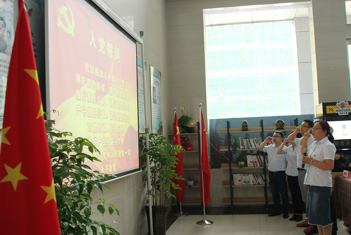 會議開始,由中共宜昌智能裝備創(chuàng)業(yè)聯(lián)盟第二支部書記楊英帶領(lǐng)微特全體黨員及預(yù)備黨員同志重溫入黨誓詞。
