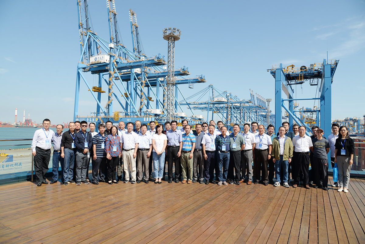 本次會議特別組織了與會代表赴青島港自動化集裝箱碼頭進行現場參觀。青島港自動化集裝箱碼頭張連鋼總經理百忙之中向與會代表詳細介紹了自動化碼頭的運營情況,并帶領大家共同參觀了自動化碼頭現場。