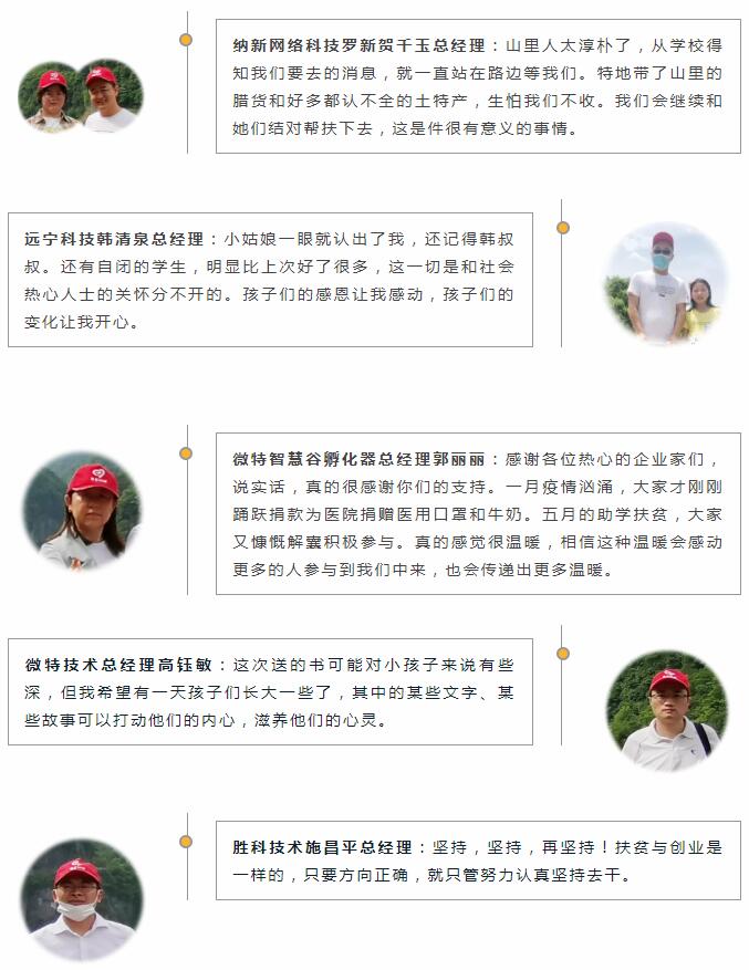 疫情期間,孩子們居家在線學習。為了盡快讓孩子們拿到熱心人士準備的圖書、書包和牛奶, 志愿者們將物資直接送到了村委會。聽鄧書記介紹村委會組織抗疫及培訓工作需要一批口罩,志愿者馬上組織了三千個質量杠杠的軍工企業(yè)華強生產的醫(yī)用口罩送到村委會。