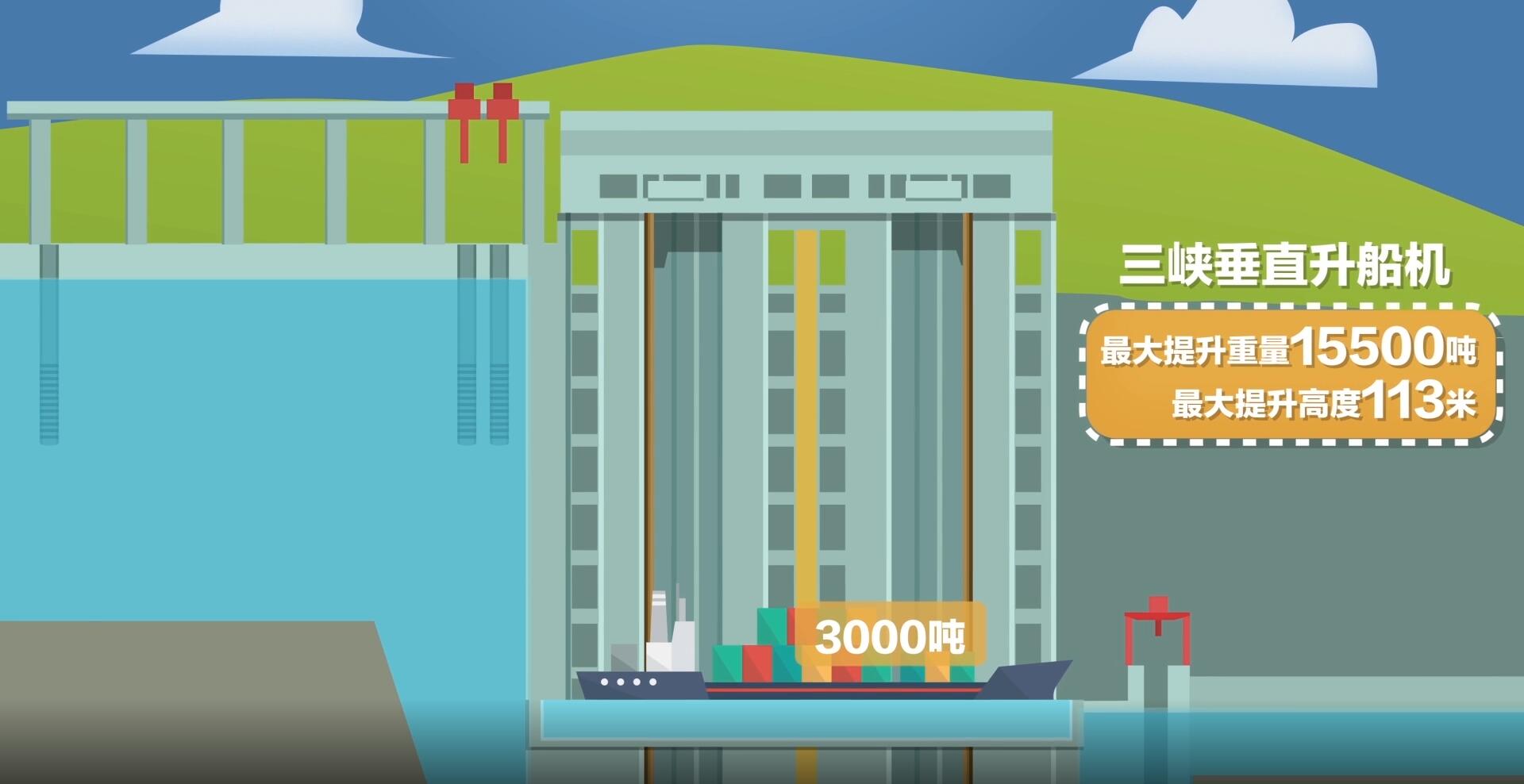 三峽升船機可載3000噸級船舶,最大爬升噸位達1.55萬噸,最大爬升高度113米,提升重量和高度,均為世界之最,位于三峽電廠的左岸,與雙線五級船閘共同組成三峽水利樞紐通航設施。