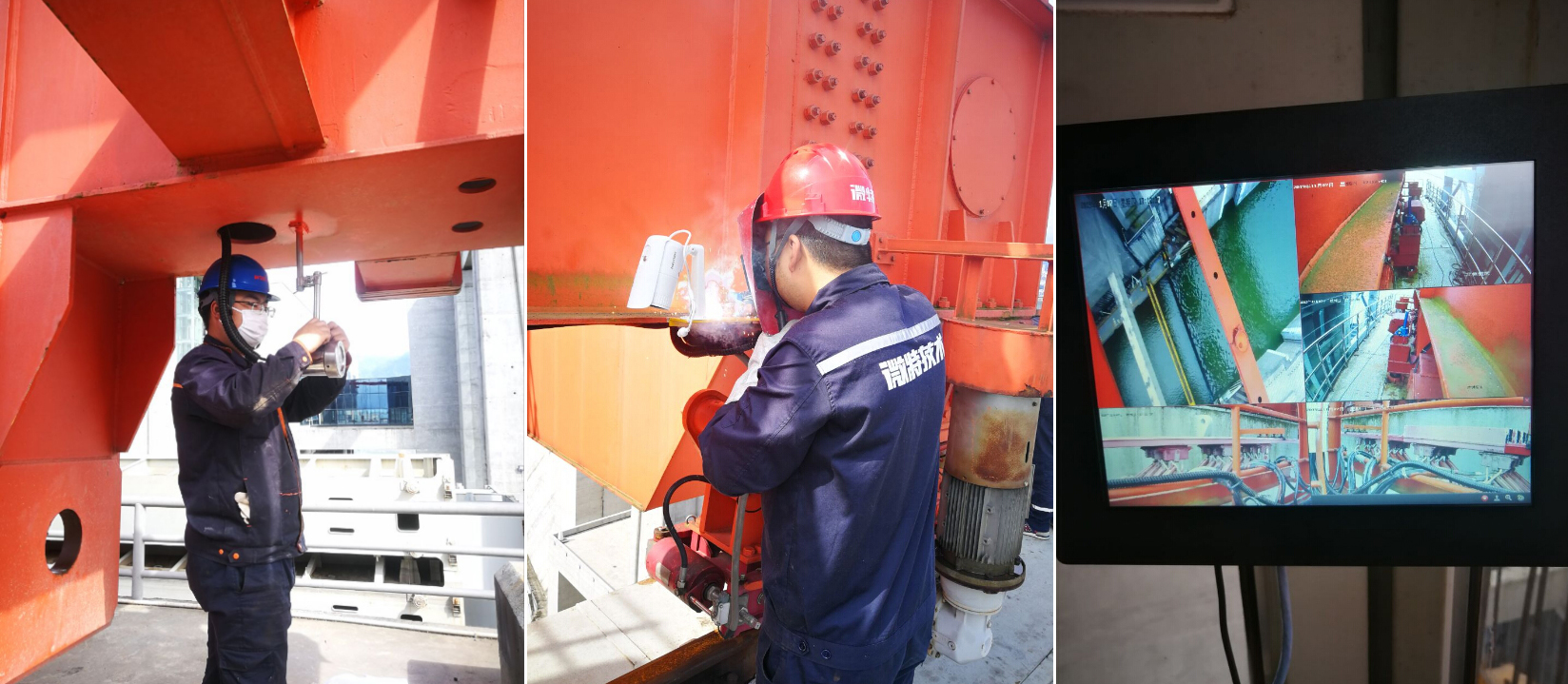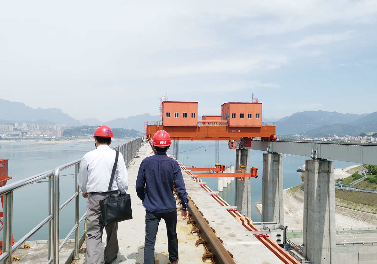 ▲微特技術人員配合三峽通航管局領導檢查現場施工情況