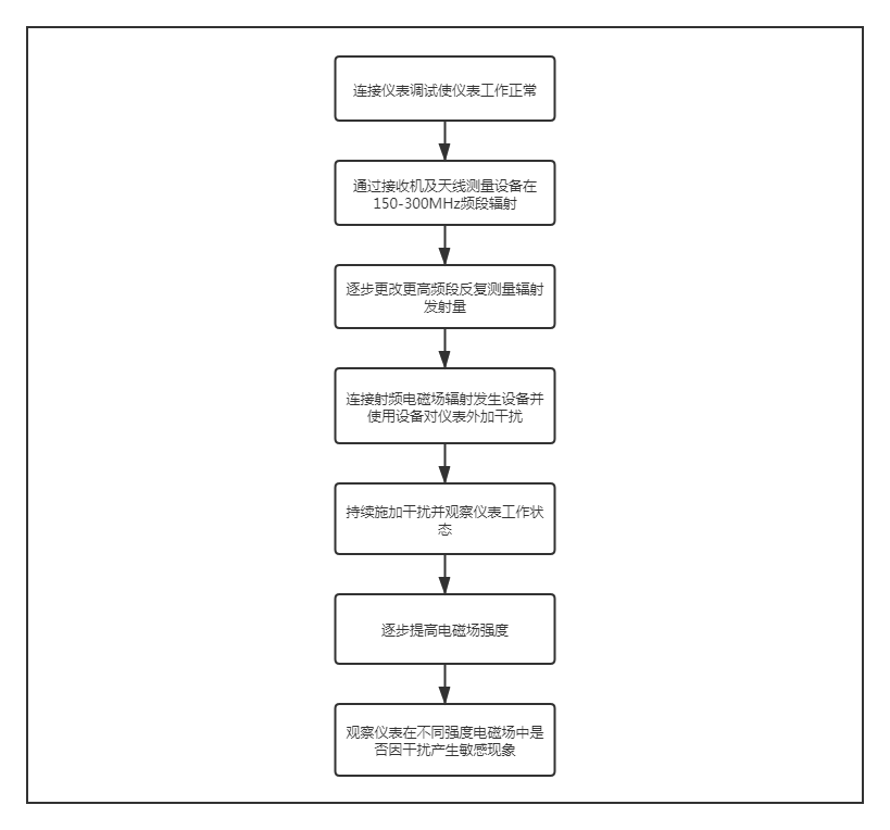 實驗在相關機構實驗室屏蔽暗室中進行,先對儀表進行調試,使儀表處于正常穩定的工作狀態,然后再通過實驗設備模擬各類干擾,察看儀表的工作狀態,檢查儀表的各類工作指標。