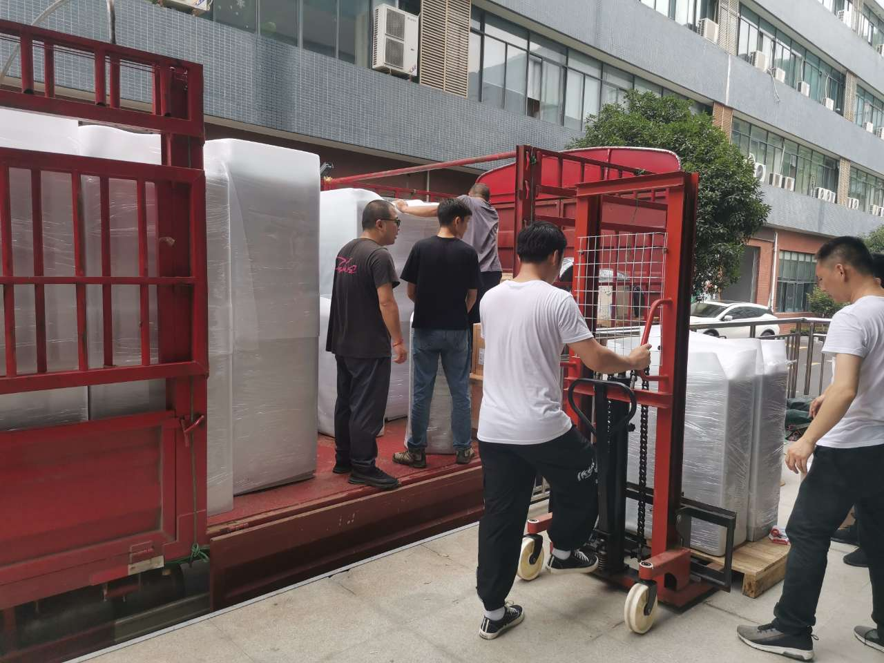 整裝待發的20余套電氣盤柜完成出廠前各項準備工作開始裝車
