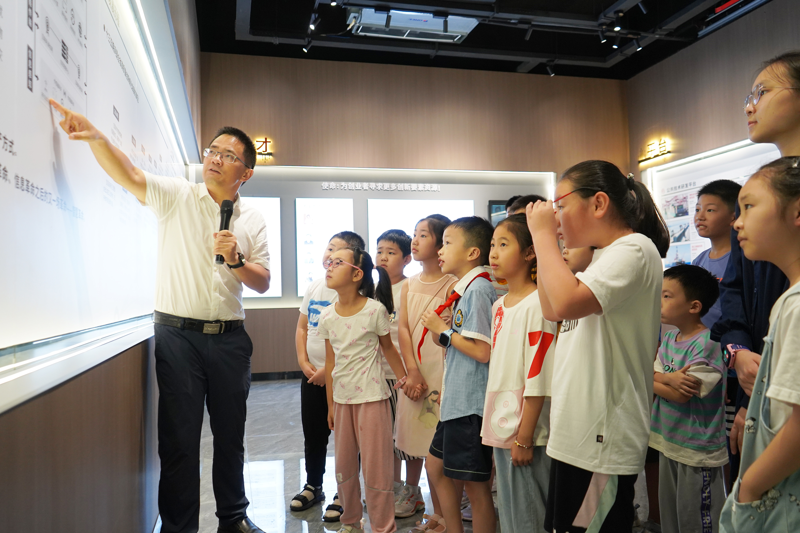 開放日活動的第一站在湖北傳感物聯產業技術研究院展廳進行,現場由董事長聶道靜與施工機械李巍帶領孩子們參觀了解起重機械相關科技產品與萬物物聯的前沿科技。