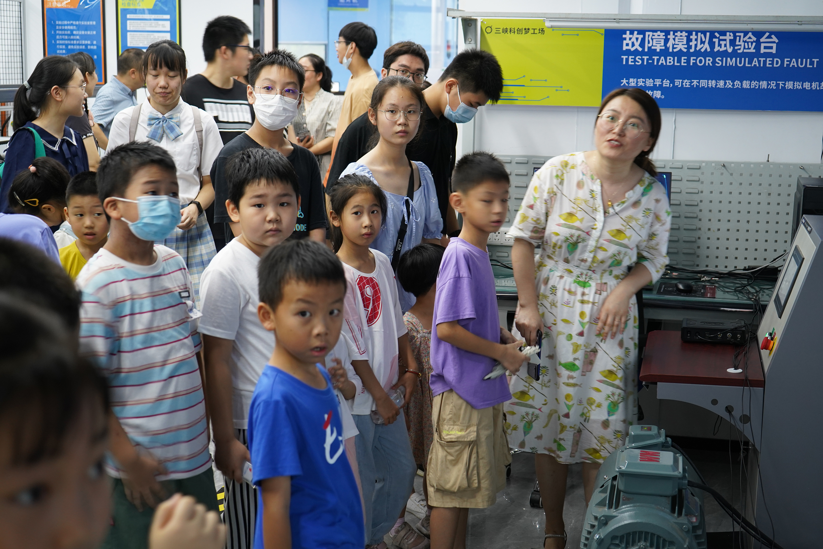 第二站孩子們來到了三峽眾創工坊,在這里孩子們參觀了電路板自動化生產過程,也各自動手體驗了簡易電路板的制作,在機械故障模擬試驗臺了解了機械設備生病后我們是如何檢測的。