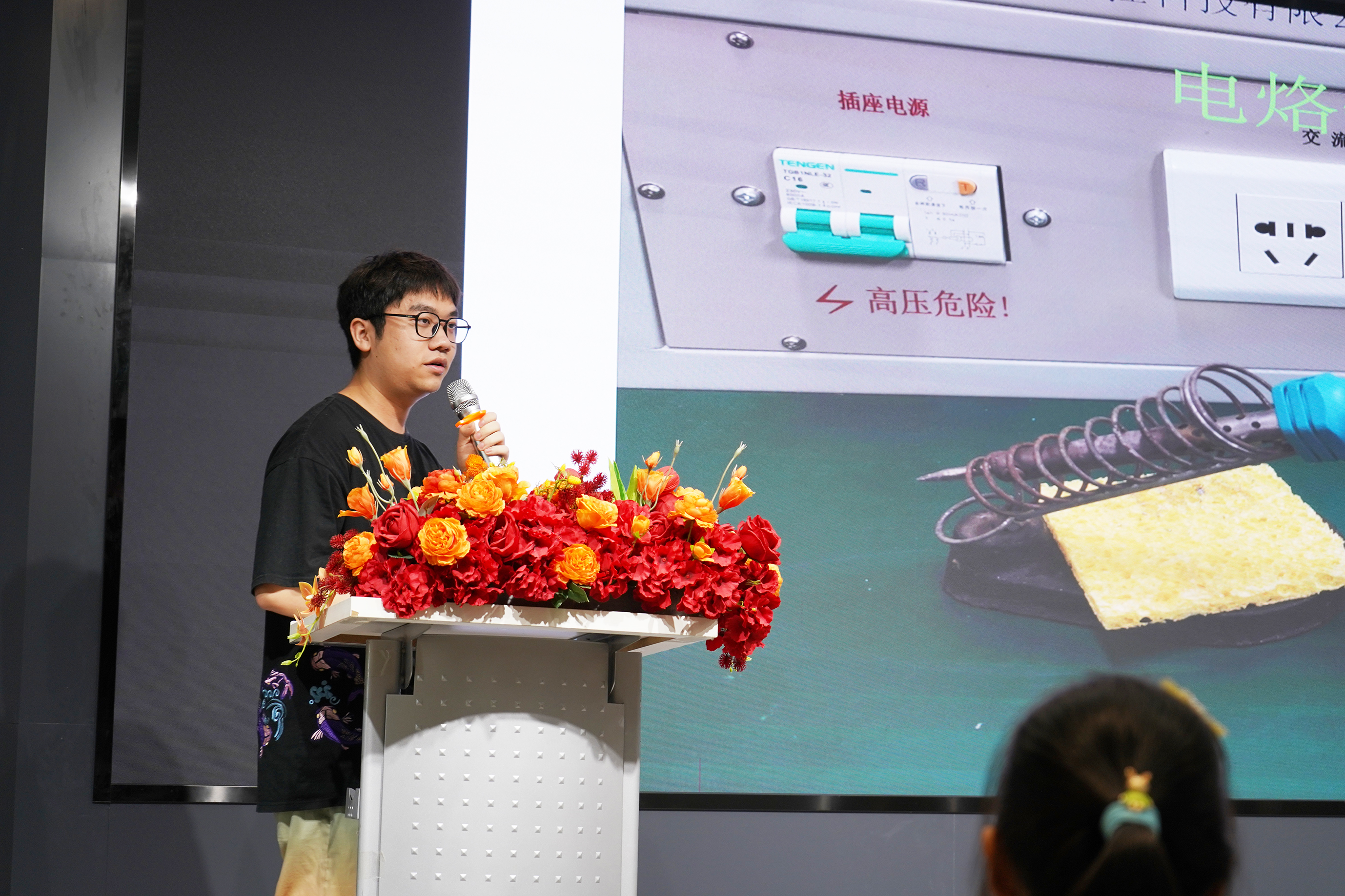 另外,余同學向所有的孩子們分享了他在大學完成的多項實驗與設計作品,其中跑著跑著會掉輪子的循跡小車引得現場的孩子們哈哈大笑,也勾起了他們無限的興趣,這場展現豐富多彩大學生活的演示也引得眾多孩子們對未來充滿了無限的向往。