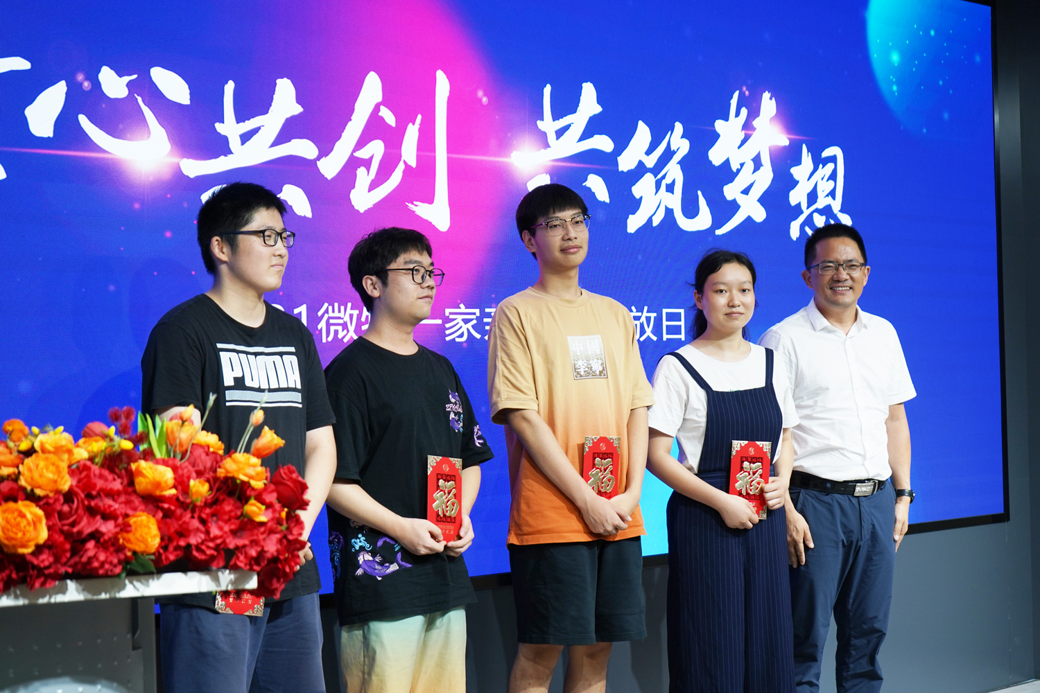 隨后,聶總為到場的準大學生們頒發獎學金,從左至右分別是聶同學就讀于英國帝國理工學院(Imperial College London)、余同學就讀于武漢理工大學電氣自動化專業、張同學就讀于合肥工業大學智能制造專業、邱同學就讀于南京信息工程大學大氣科學專業,少年強則國家,國家科學技術的進步與發展離不開這些少年們,未來的廣闊天地都是屬于他們發光發熱的舞臺,后浪們!加油!