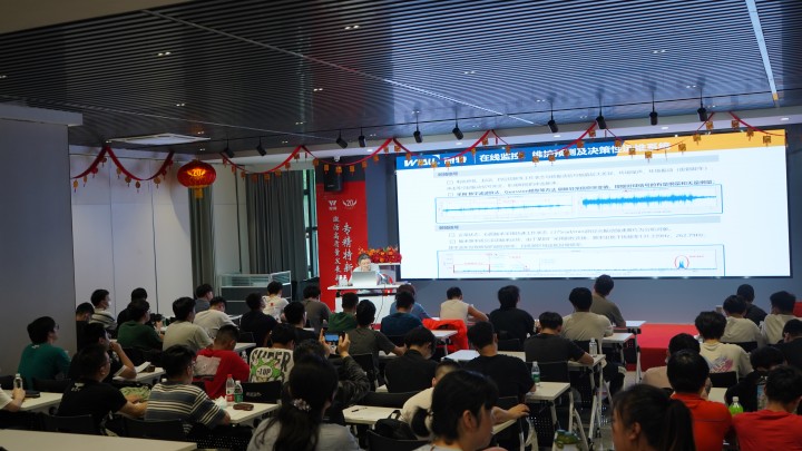 微特工程師張工向同學們介紹了“基于5G起重機在線監控、維護預測及決策性運維系統”,講解系統構成、原理分析及系統優勢。課堂氣氛活躍,在多位工程師的講解下,學生們對微特產品有了進一步的了解。課程結束后,學生分組進入微特實驗室,近距離體驗了微特產品的檢測過程,體會了微特在品質上的用心。