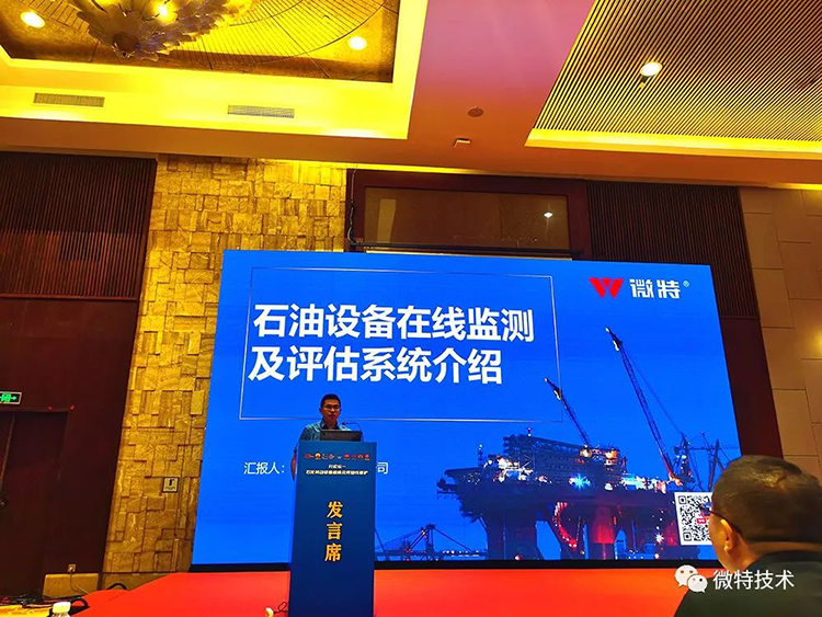 (微特海工事業部施總在會議上做題為“石油設備在線監測及評估系統介紹”的演講)