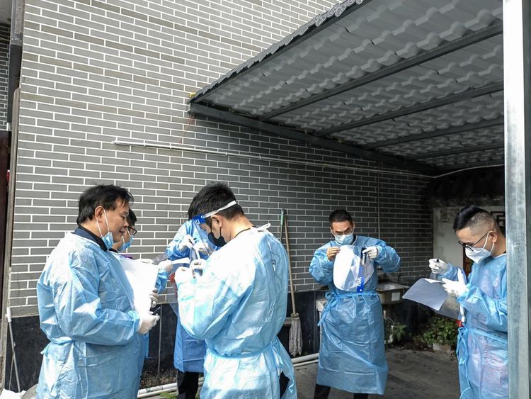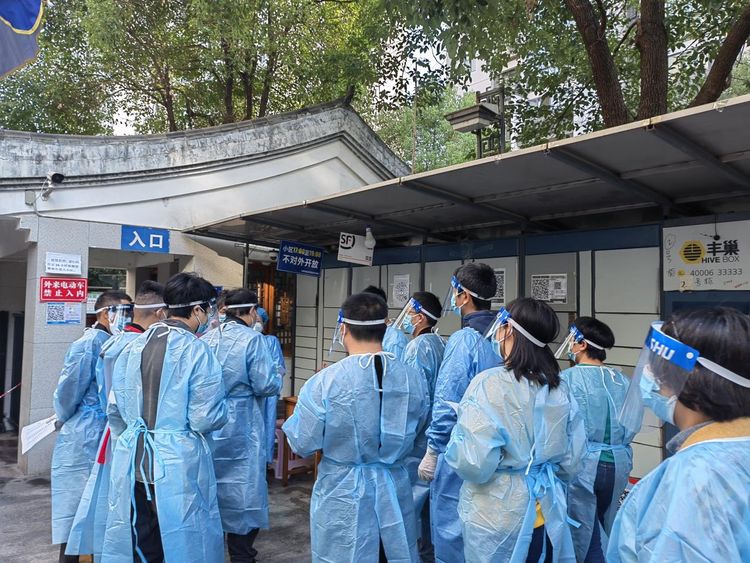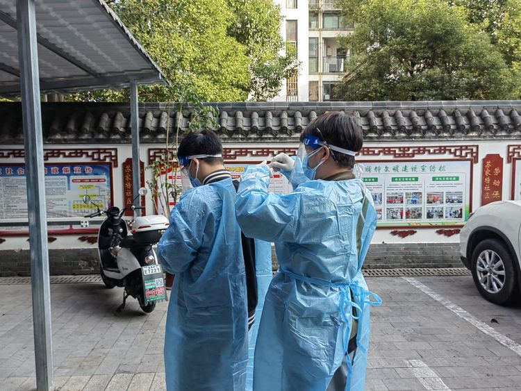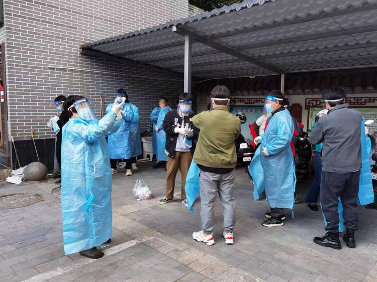 領(lǐng)取防護(hù)設(shè)備協(xié)助穿戴、分配樓棟任務(wù),不到十分鐘微特小分隊(duì)就出發(fā)了。