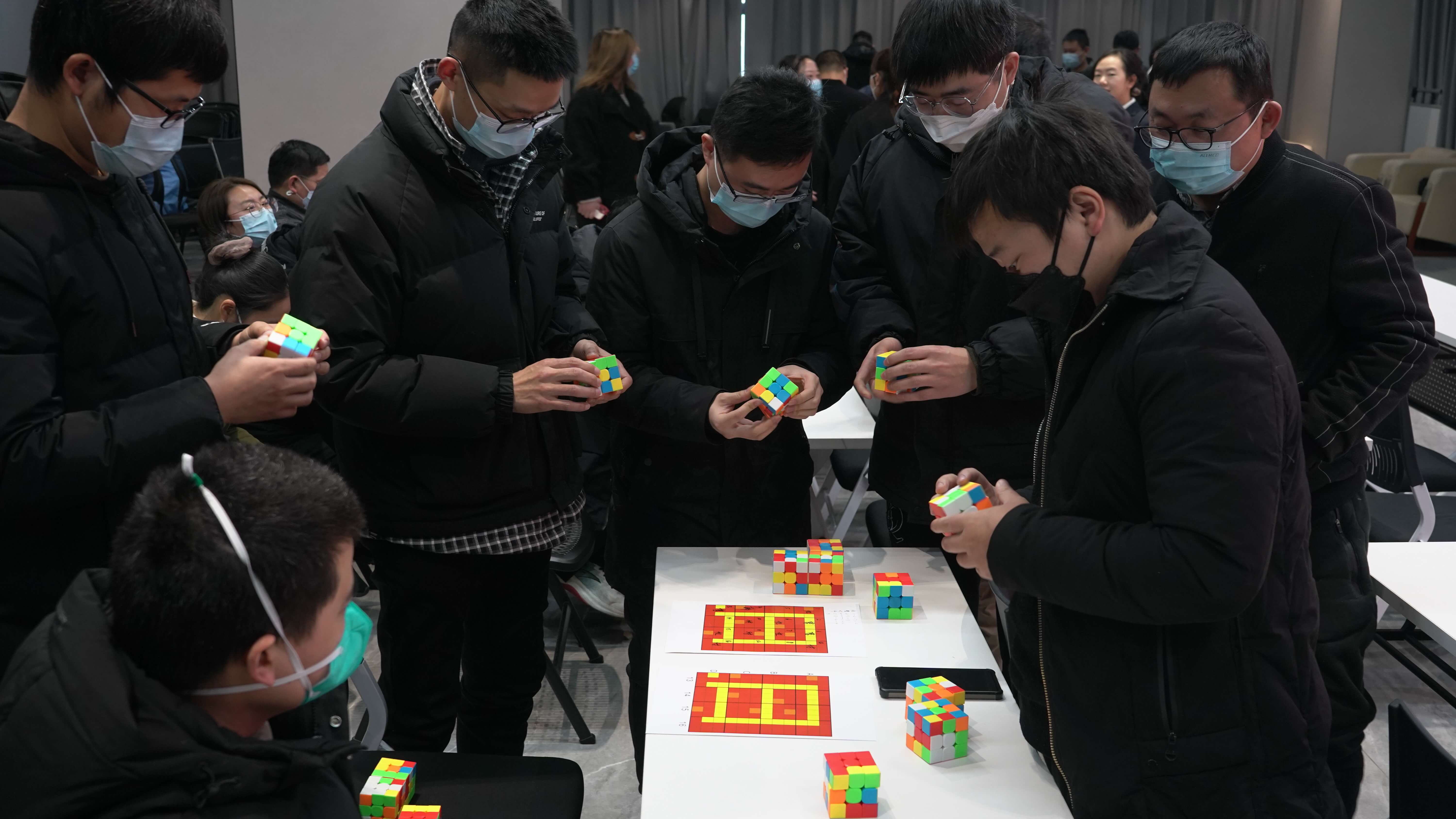 12個部門,在大家通力協助的努力下,每個部門都以最快速度用16個魔方拼成制定的圖案字。伴隨著生日歌的響起,臺上臺下成員一同齊唱生日歌。生日歌結束后,大家齊聲高喊“祝微特生日快樂 2023篤定前行”,將此次生日會推向高潮。