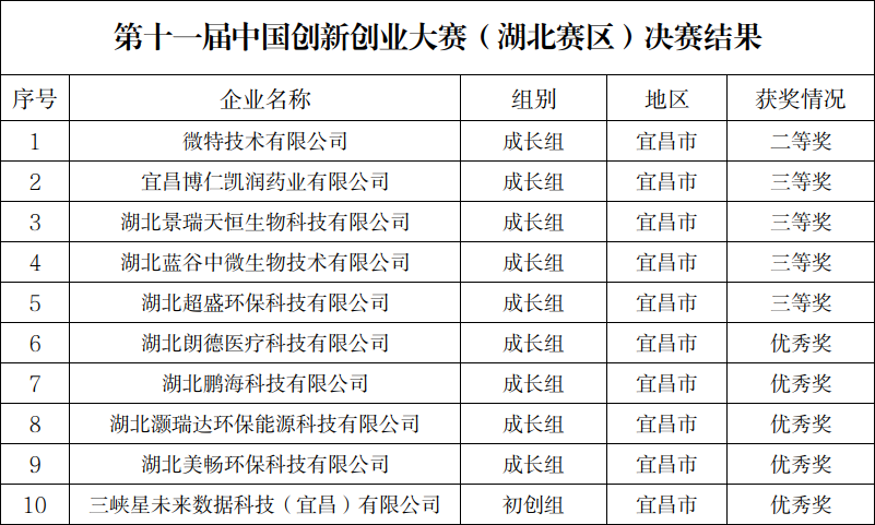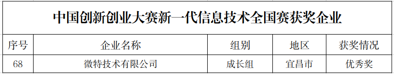 日前,第十一屆中國創新創業大賽新一代信息技術全國賽在武漢順利收官,微特技術有限公司獲得優秀獎。此外,我市共有10家企業在湖北賽區決賽中獲獎,其中:二等獎1家、三等獎4家、優秀獎5家,獲獎企業總數、獲得等次獎數均創歷屆大賽新紀錄,涵蓋節能環保、生物醫藥、新一代信息技術和高端裝備制造等技術領域。