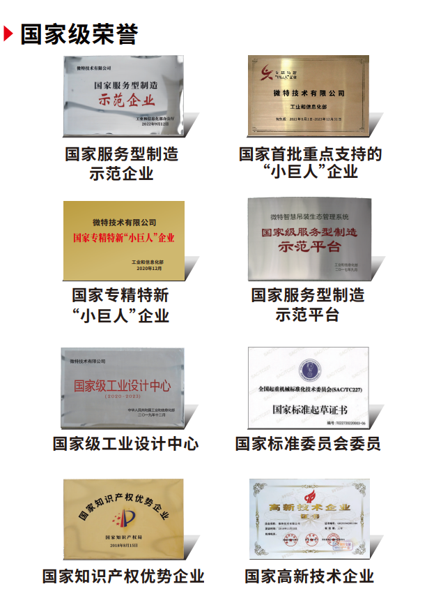 微特深耕起重機安全保護細分領(lǐng)域,補齊起重機維修保養(yǎng)報廢的行業(yè)技術(shù)標準和鏈條,逐漸成為起重機械安全保護領(lǐng)域?qū)<遥诵漠a(chǎn)品國內(nèi)市場占有率第一,2020年獲評國家第二批專精特新“小巨人”企業(yè),2021年成為國家首批重點支持的“小巨人”企業(yè)。微特用二十年多年時間,從一個弱小的新生命,成長為國內(nèi)大型起重機安全解決方案的首選品牌。