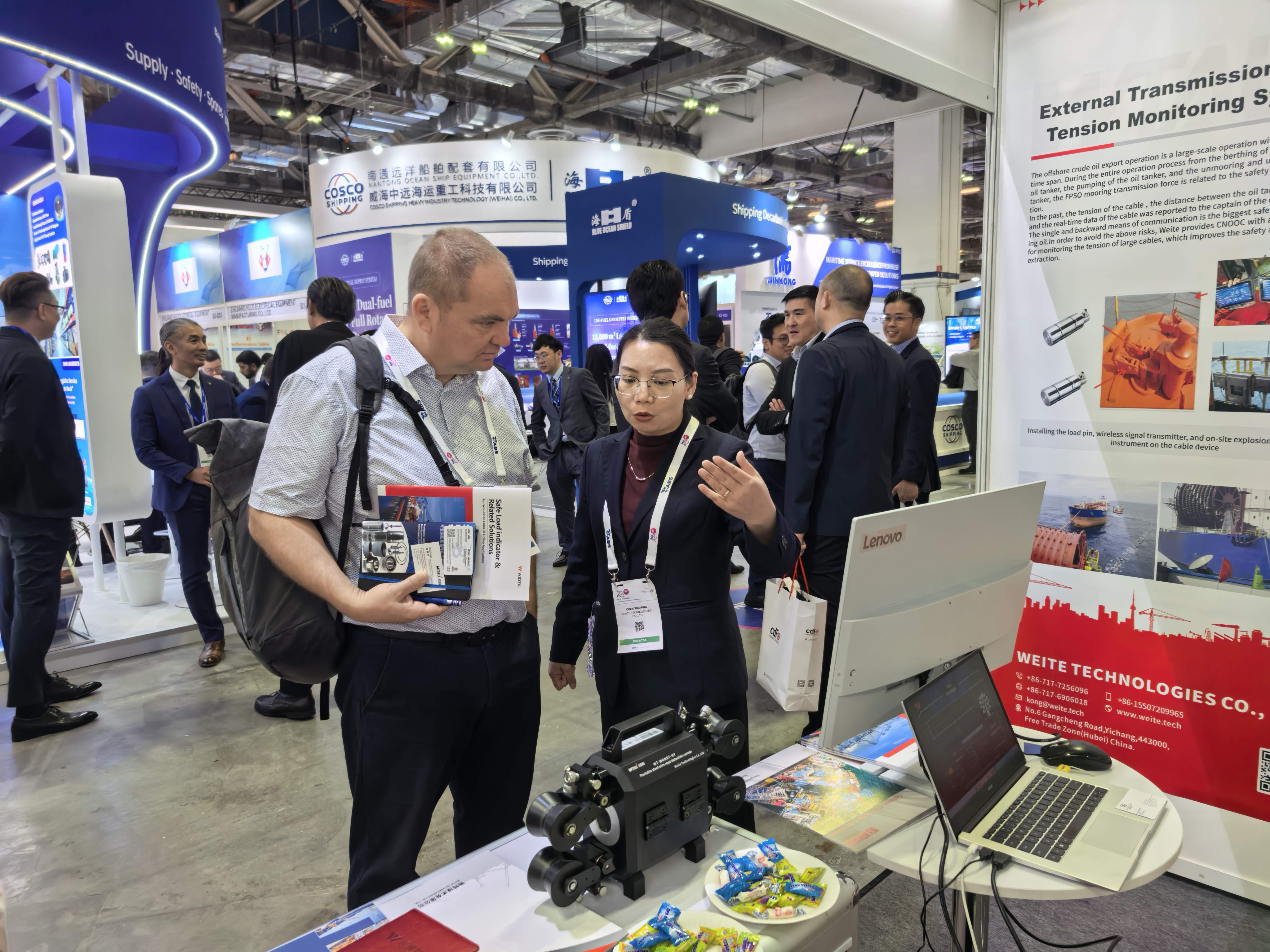 本屆展會由Informa Markets和新加坡海事基金會(SMF)聯合主辦,吸引了來自世界各地的海事精英、行業專家以及相關企業齊聚一堂。Sea Asia兩年一屆,今年為第 10 屆,歷經近20年發展,其影響力輻射全球,成為推動海事行業發展的重要平臺,也是海事界的年度盛會。 微特參展的產品包括鋼絲繩無損檢測系統、海洋吊力矩限制器、無線拉力計、相關傳感器等產品。此外,還展出了微特各類類型起重機解決方案。 此次展會不僅讓微特的技術成果站上了國際舞臺,也讓我們看到了全球海事市場對智能化、可持續解決方案的迫切需求。未來,微特將繼續深化技術創新,攜手合作伙伴,讓“中國智能制造”助力全球航運業破浪前行!