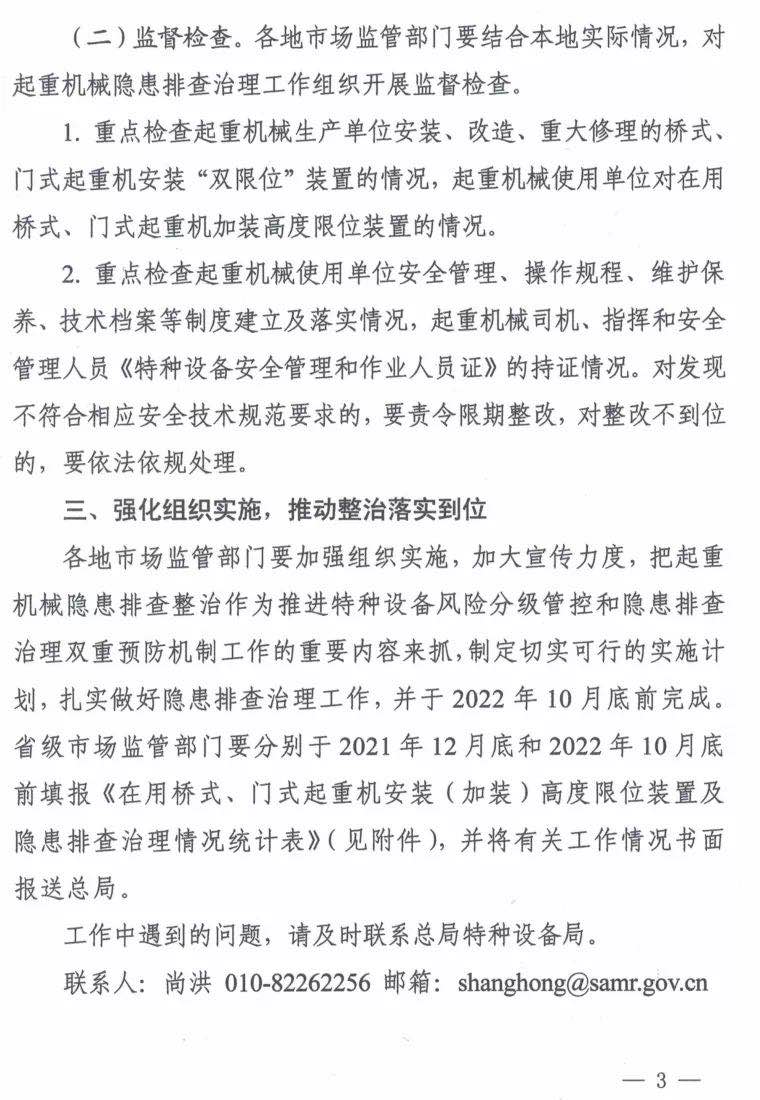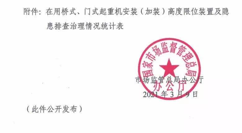 為“消除事故隱患,筑牢安全防線”,國家市場監督管理總局辦公廳于3月9日發布《關于開展起重機械隱患排查治理工作的通知》
