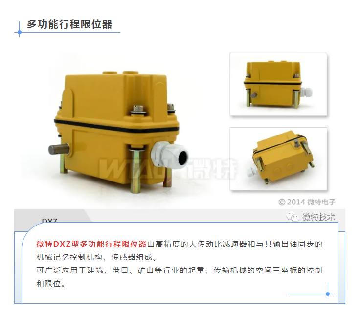 自2002年成立以來始終專注于起重機安全運行的研究,做起重機安全監控管理產品。到目前為止已自主研發生產了多款可用于橋式、門式起重機上的高度限位裝置。產品種類豐富、功能齊全、價格美麗、質量安全有保障