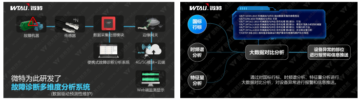 針對市場現(xiàn)狀,微特技術(shù)自主研發(fā)了故障診斷多維度分析系統(tǒng),通過對國標(biāo)行標(biāo)、時頻譜分析、特征量分析進行大數(shù)據(jù)對比分析,對設(shè)備異常進行報警和數(shù)據(jù)推送。