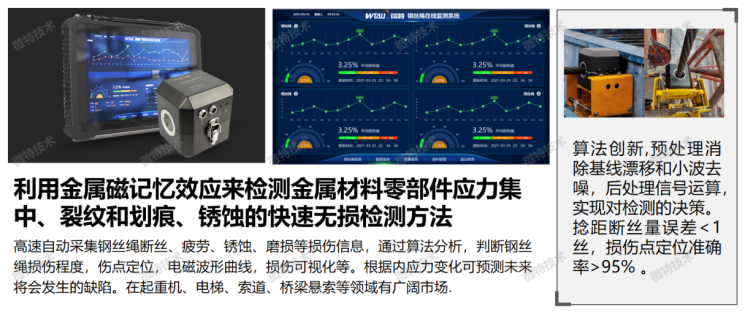 微特推出新型起重設備鋼絲繩無損檢測系統,本系統擁有“高效、精準、便捷、安全”等特點,科學有效地解決了目前鋼絲繩自動化檢測難題。