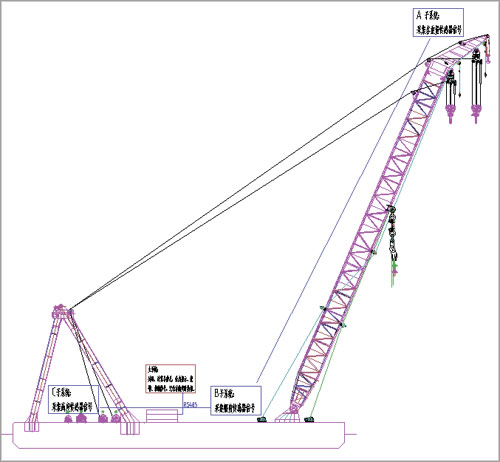 例2400T浮式起重船力矩系統結構: