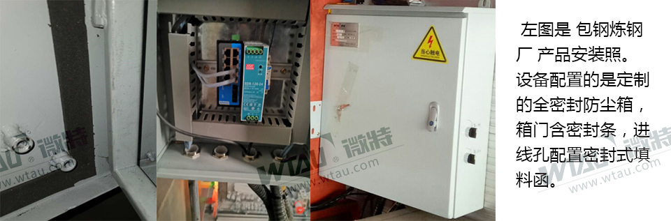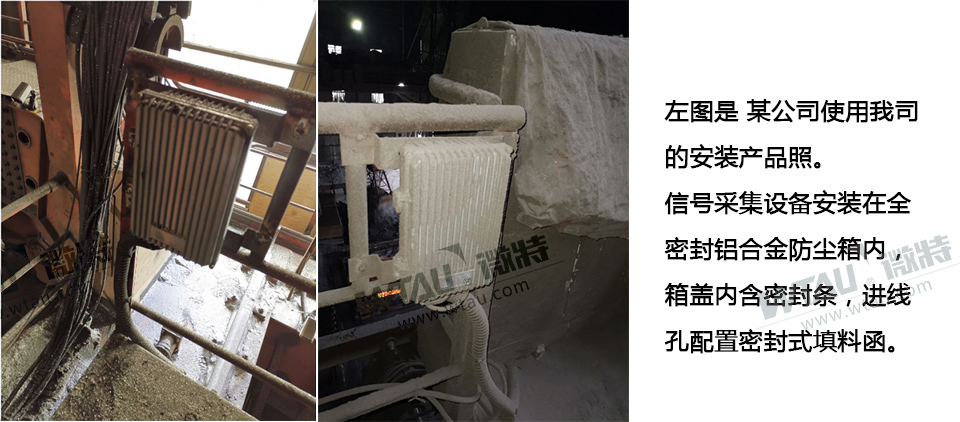 信號采集設(shè)備安裝在密封防塵防護箱中。防塵箱設(shè)計有防塵密封條,進線孔配置密封環(huán)、填料函,對現(xiàn)場的金屬粉塵、金屬氧化膜、煙塵隔離,保障信號采集設(shè)備不受環(huán)境影響。