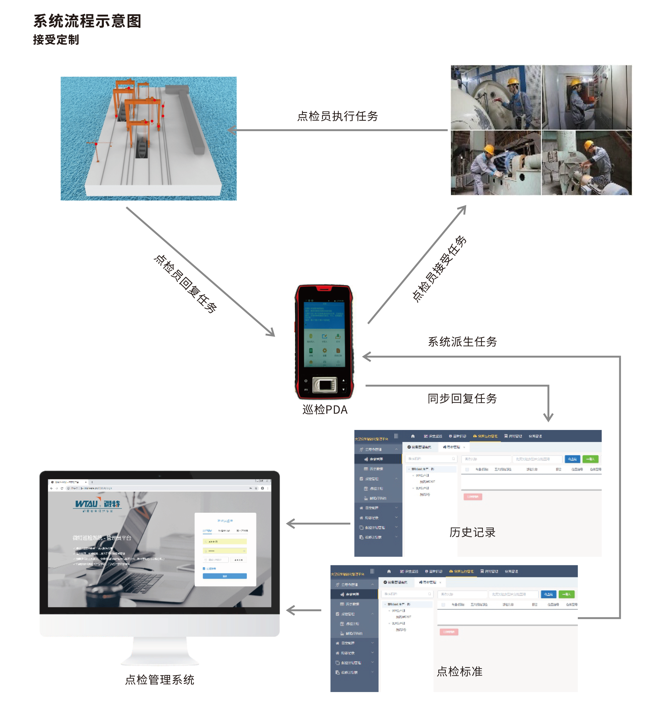 WT-SMS-V2.0設備點檢系統是結合船廠起重機實際生產點檢標準及管理積累經驗,設計生產的一款產品。