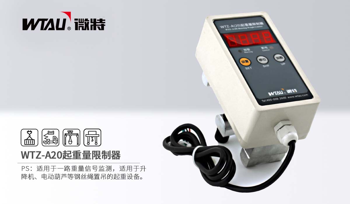 WTZ-A20起重量限制器用于一路重量信號(hào)監(jiān)測,適用于升降機(jī)、電動(dòng)葫蘆等鋼絲繩置吊的起重設(shè)備。